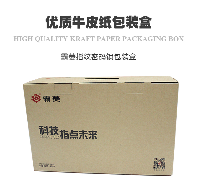 霸菱指纹密码锁包装盒是经由伽立科技设计和生产,以牛皮纸为材质的包装盒,简约的风格更加突显霸气,而且这款牛皮纸包装盒比之前采用满版印刷的包装箱在成本上降低了很多。